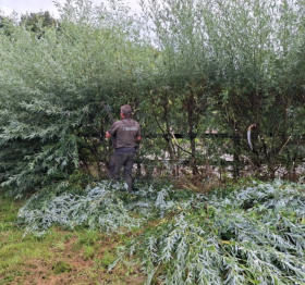 Snoeien, snoeien en nog eens snoeien. Grof geschut ingehuurd, want we zagen door de bomen de tuin